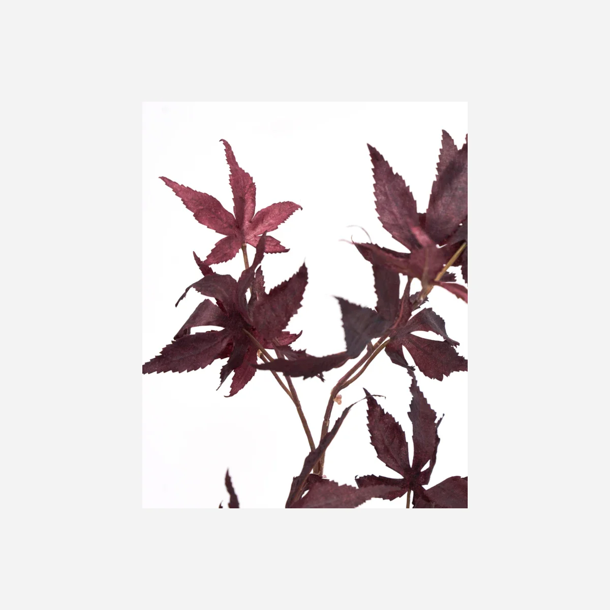 Den kunstige HDMaple-gren fra House Doctor med bordeaux nuancer og fintformede blade. Grenen er en skulpturel og stemningsfuld detalje til vaser.