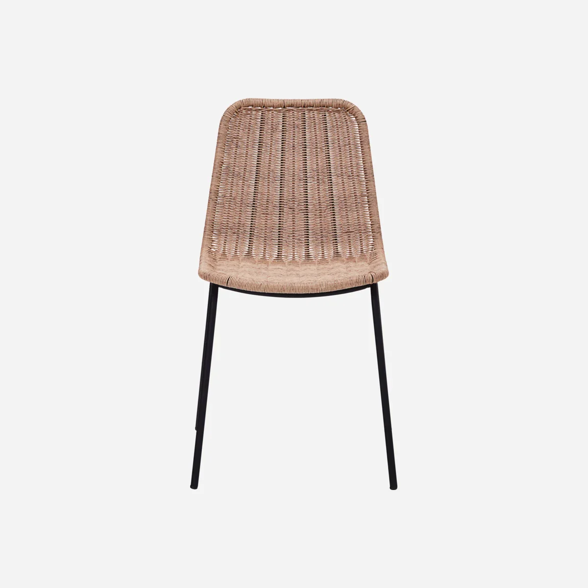 Valget af stole kan have afgørende betydning for det samlede udtryk i spisestuen eller på terrassen. Med denne stol, Hapur, fra House Doctor er du sikret et stilfuldt look, der tilfører varme til rummet. Det flettede materiale har et naturligt look, der spiller fantastisk sammen med de mørke ben og den enkle form. Velegnet til både indendørs og udendørs brug.