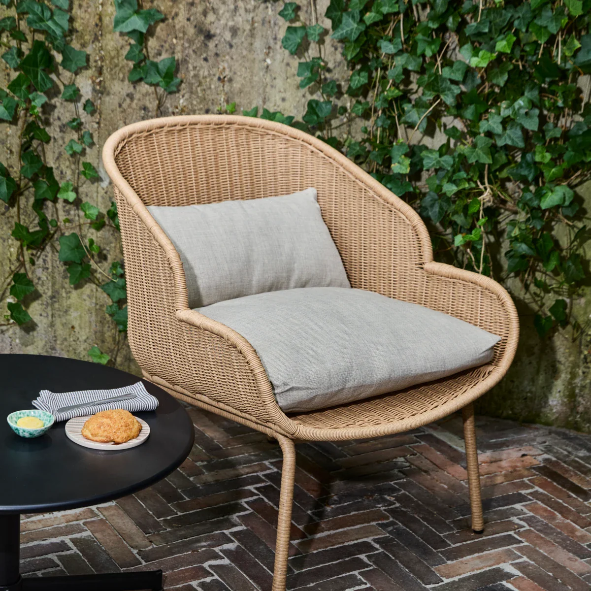 Tilføj et strejf af varme til dit loungeområde eller have Hapur-loungestolen fra House Doctor. Det flettede design giver den er naturligt og luftigt look. Robust men alligevel let. Det er en stol, der holder, både med hensyn til kvalitet og det tidløse design. Læn til tilbage og slap af i designet, der er fuldendt med en behagelig, høj ryg. Fuldendt med en siddehynde og et tæppe får du en stilfuld tilføjelse til din stue eller terrasse. Velegnet til både indendørs og udendørs brug.
