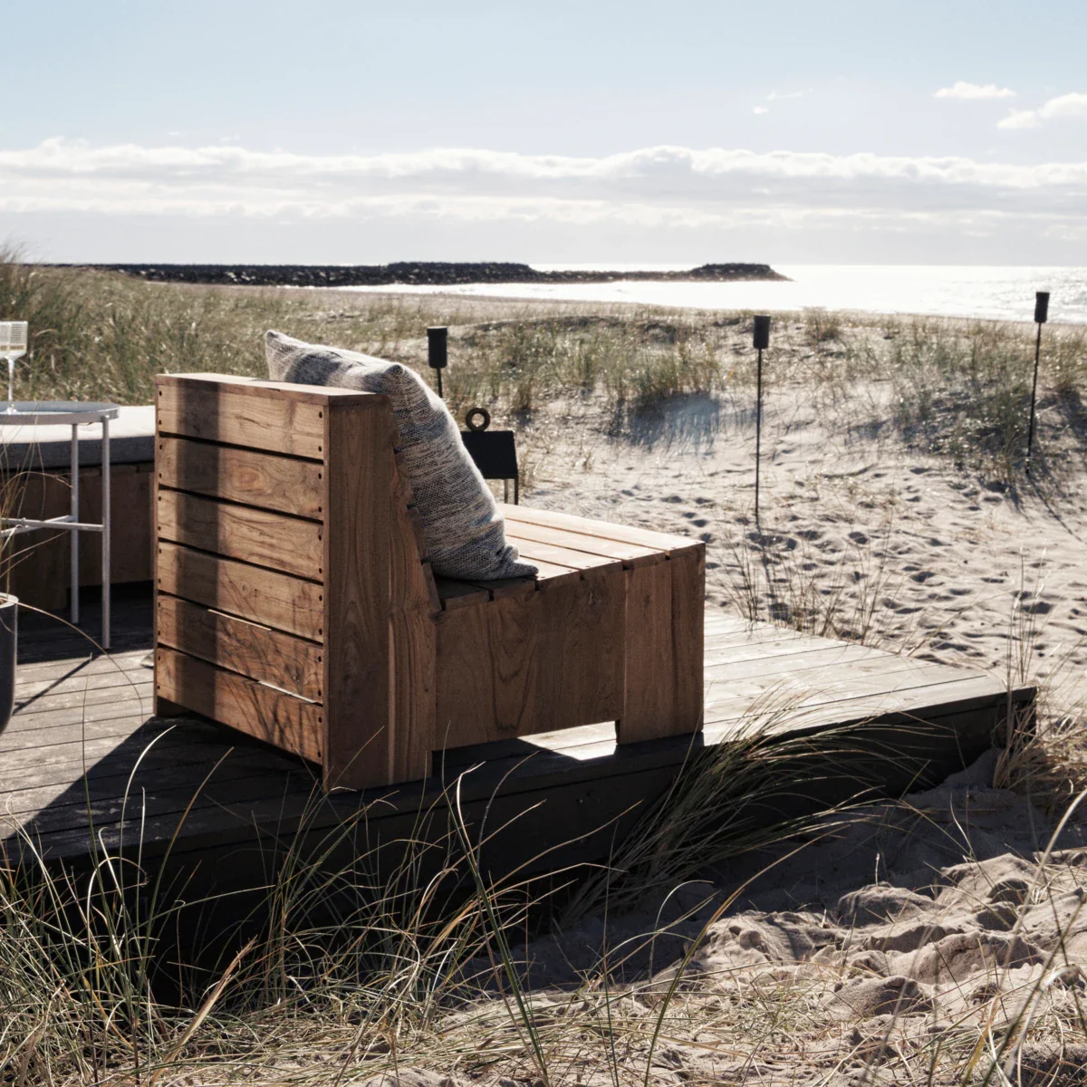 Skab et lækkert loungeområde på terrassen eller i haven med flotte udemøbler. Loungestolen Woodie fra House Doctor er lavet af teaktræ. Træet har fra naturens side et højt olieindhold, der betyder, at det kan holde i lang tid uden at blive nedbrudt. Træet passer derfor perfekt til haven. Med tiden vil teaktræet få et gråligt skær og patina. Vedligehold loungestolen ved at behandle den med olie med jævne mellemrum. Det vil bevare træets glød. Vedligeholdelsesfolder følger med.