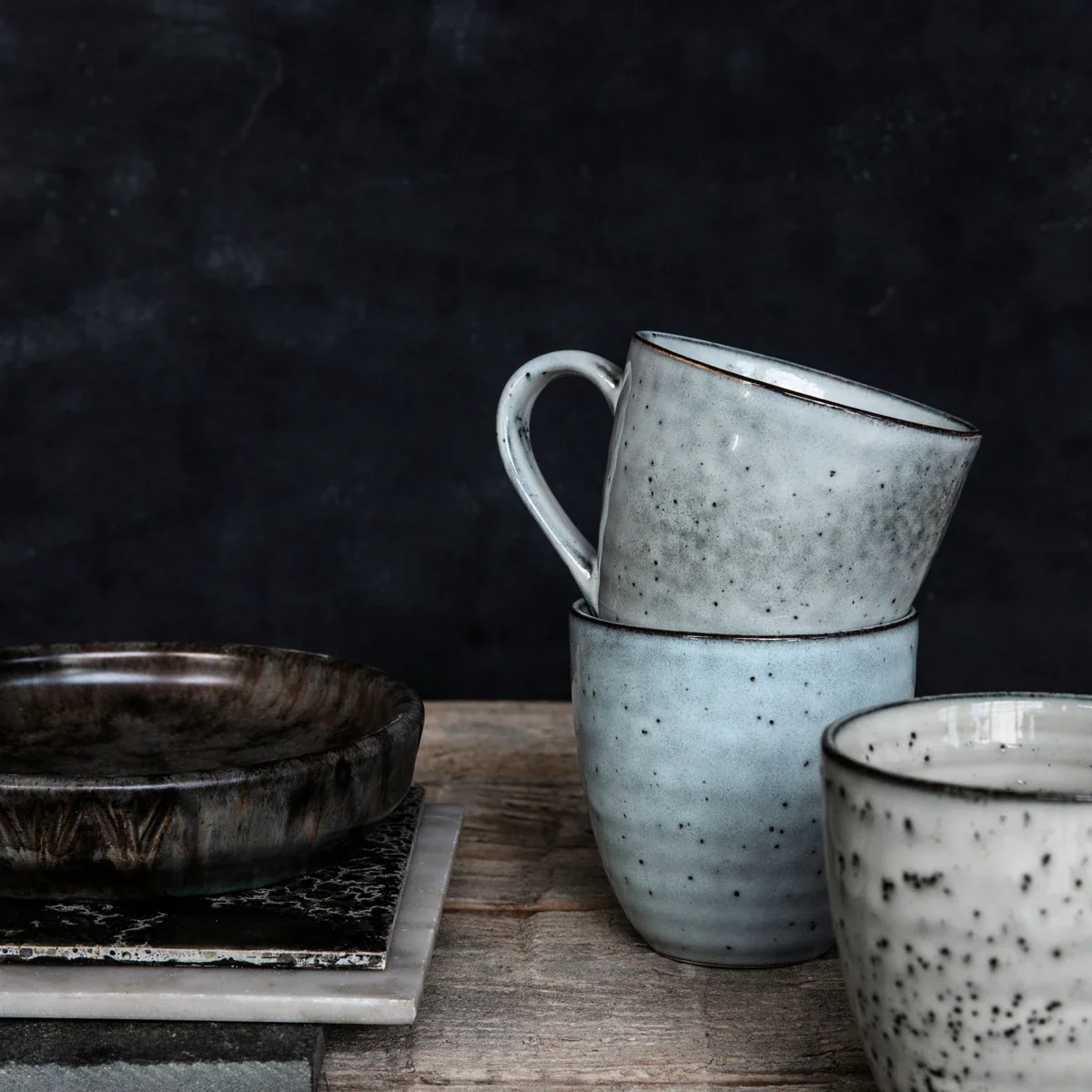 Start dagen med stil med en smuk keramikkop fra House Doctor. Rustic-koppen er håndlavet af keramik og har et flot, rustikt udtryk, der bringer en flot og personlig stemning ind i dit hjem. Koppen er perfekt til morgenkaffe, te eller varm kakao. Koppen har en flot, rustik glasering, der emmer af rå og autentisk natur. Glaseringen er holdt i grå- og blålige toner, der giver et råt udtryk. Da koppen er håndlavet, vil der være variationer i koppens udtryk. Tåler både opvaskemaskine og mikrobølgeovn.