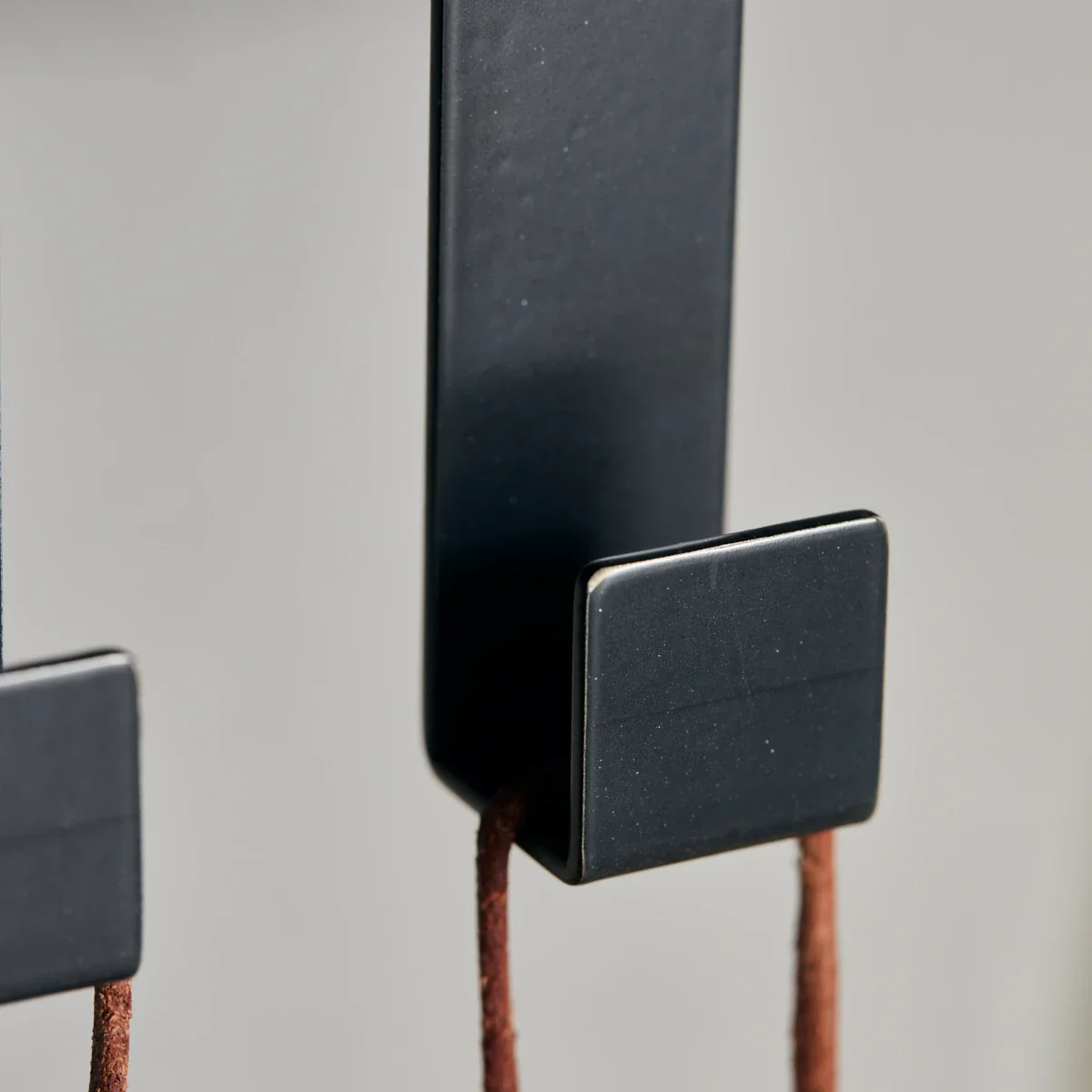 Gør din Fari-reol fra House Doctor endnu mere funktionel med denne skinne. Den leveres med 5 knager og er lavet i stål med en glat, sort belægning. Skub blot skinnen over kanten af den nederste hylde og få ekstra opbevaring. Krogene skaber et lettere udtryk og en god balance mod hylderne. Afhængigt af hvor du har placeret din Fari reol, kan du bruge knagerne til viskestykker, grydeholdere, redskaber eller kurve.